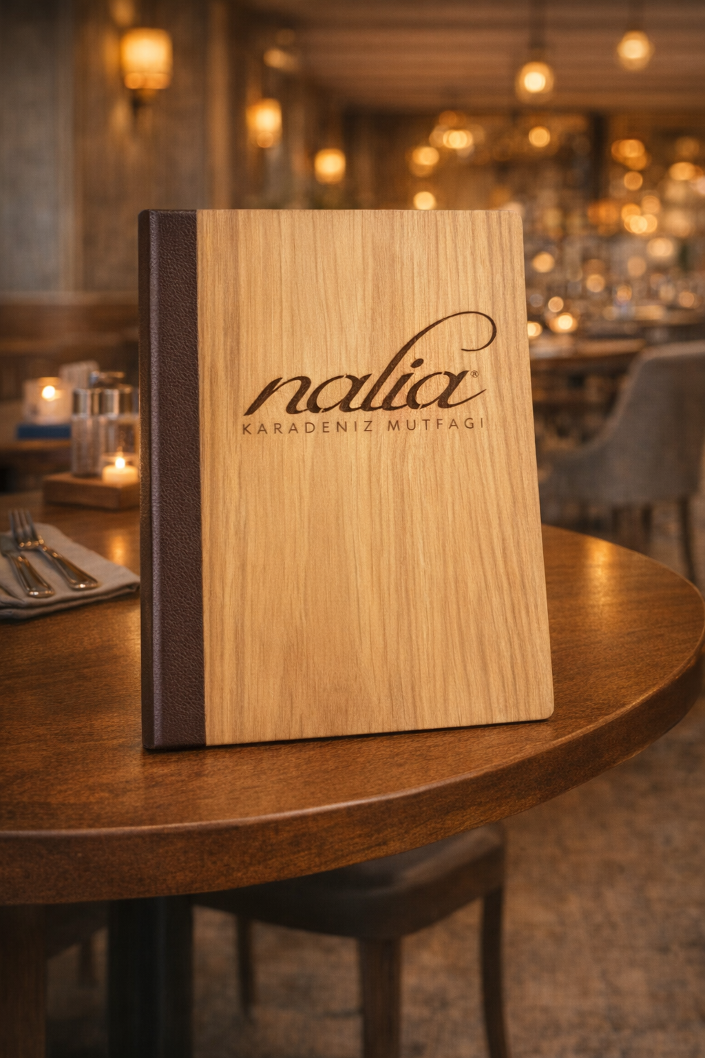 Premium Ahşap Menü Kapı, doğal ahşabın sıcak dokusunu modern tasarım çizgileriyle birleştiren özel bir sunum ürünüdür. Restoran, kafe, otel ve fine-dining işletmeler için tasarlanan bu model, hem dekoratif hem de fonksiyonel yapısıyla profesyonel bir menü deneyimi sunar. Yüksek kaliteli ahşap yüzeyi, özel zımpara ve vernik işlemleriyle güçlendirilmiş olup uzun yıllar formunu korur.