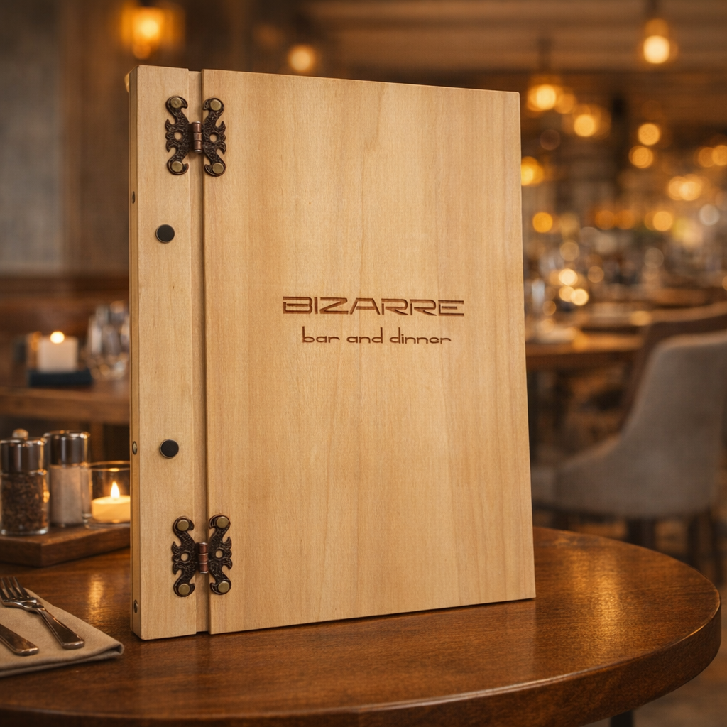 The Wooden Menu Cover is designed for venues seeking a natural, elegant, and long‑lasting presentation for their food and beverage menus. Crafted from high‑quality solid wood, each piece offers a unique texture and premium feel that enhances the overall dining experience. The protective matte or varnished finish ensures durability against daily use, moisture, and frequent handling.
