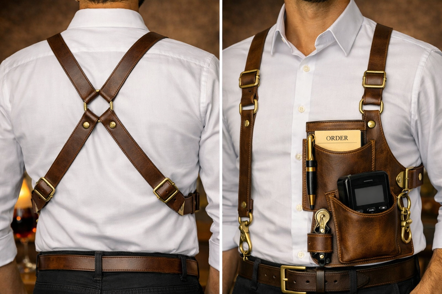 Deri Önlük, yoğun çalışma temposuna sahip profesyonel işletmeler için tasarlanmış premium bir üründür. Aşınmaya dayanıklı yapısı, kaliteli deri dokusu ve ergonomik kesimi sayesinde hem konfor hem de uzun ömür sunar. Barista, garson, şef, servis personeli ve resepsiyon ekipleri için ideal bir kullanım sağlar.
