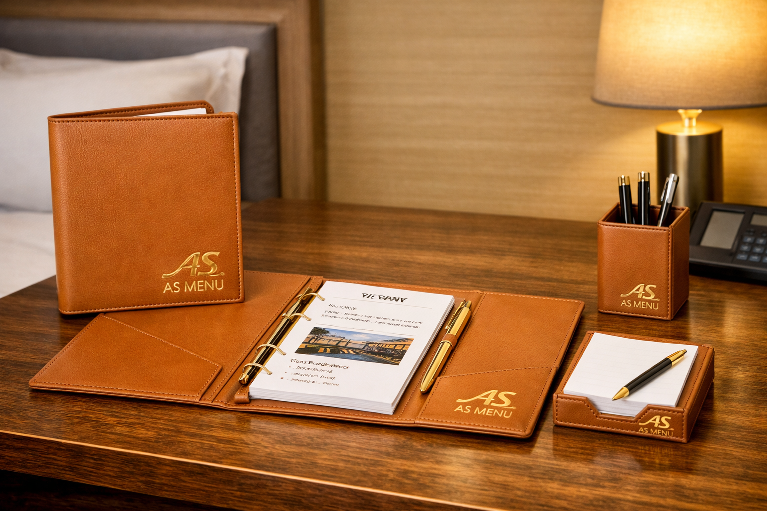 This leather bedside notepad holder is designed to enhance the guest experience in hotel rooms and suites. Its premium leather exterior adds a refined and professional touch to the room, while the durable internal structure ensures long‑lasting performance. The easy‑clean surface makes it ideal for daily hotel operations. With customizable colors, sizes, and branding options, this notepad holder can be tailored to match your hotel’s interior design and brand identity.