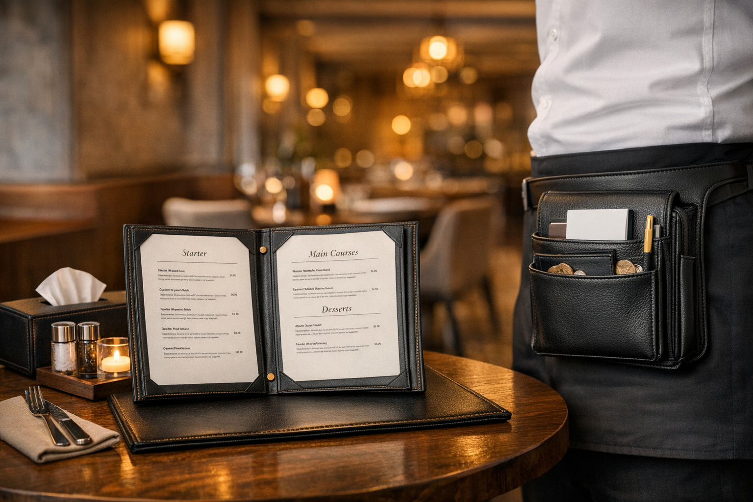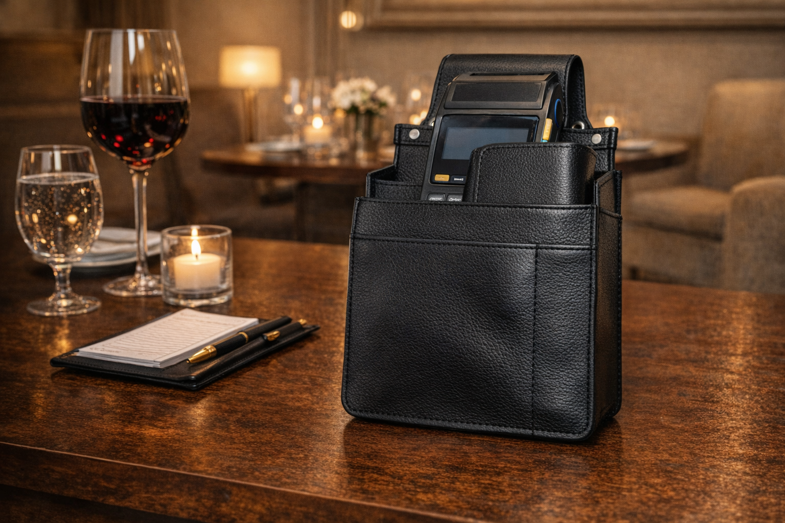 Our handcrafted waiter bags are designed to meet the professional needs of restaurants, cafés, and hotels. Built with durable leather and reinforced stitching, they offer long‑lasting performance even in high‑traffic service environments. The functional pocket layout ensures quick access to order slips, cash, cards, and essential tools, helping staff work faster and more efficiently.